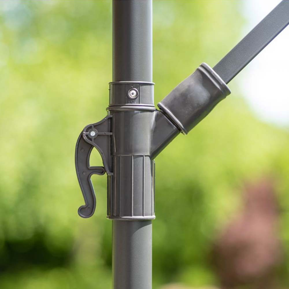Stabilitatea unei umbrele de grădină este influențată semnificativ de baza în cruce . Pentru confortul dumneavoastră, este atașat un mâner pentru a plia produsul. Copertina de deasupra suportului vă permite să o poziționați oriunde și să alegeți orice locație de umbrire în funcție de unghiul luminii solare. Gură de aerisire a copertinei permite circulația aerului.