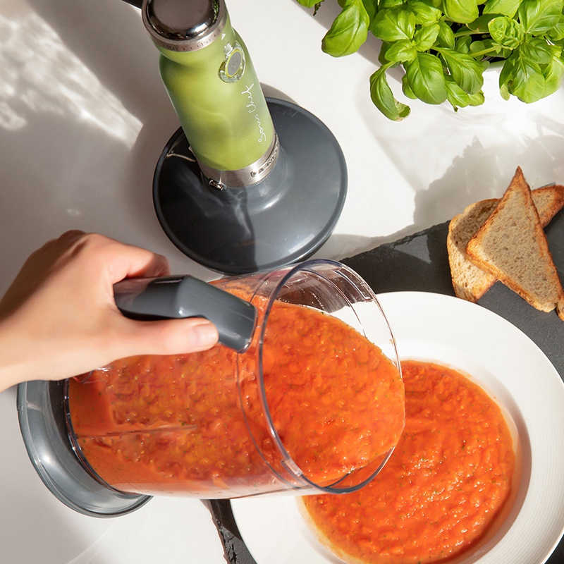 - Pentru supe cremă și piure: folosește piciorul de inox direct în oală (cu grijă la stropire).