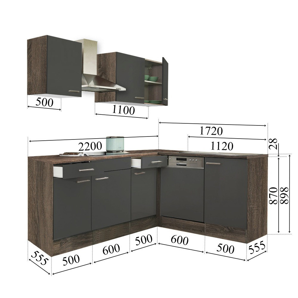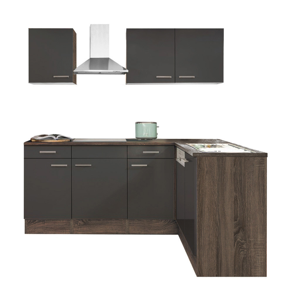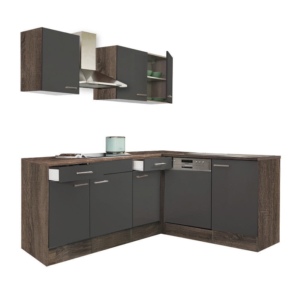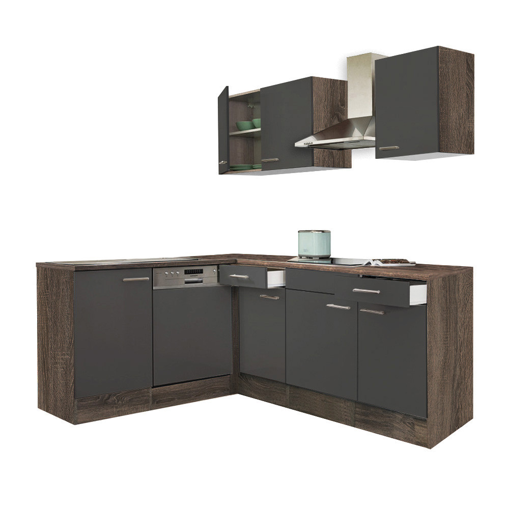 Mobilă de bucătărie de colț Leziter Yorki 220 cm – stejar Yorki & antracit satinat