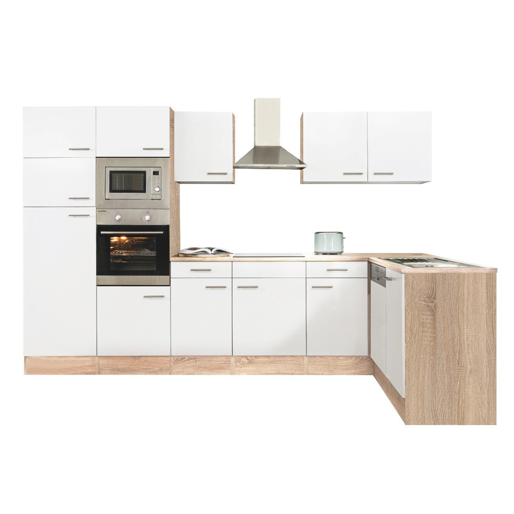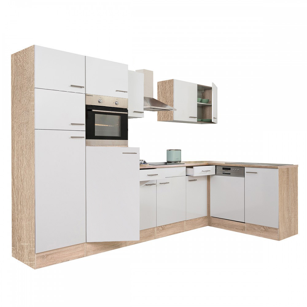 Mobilă bucătărie de colț Leziter Yorki 340 cm, stejar Sonoma cu front alb satinat