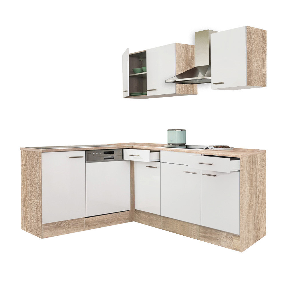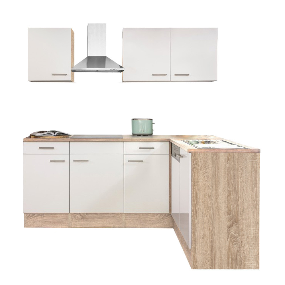 Mobilă de bucătărie de colț Yorki 220 cm – Sonoma & alb satinat, pentru un spațiu bine organizat