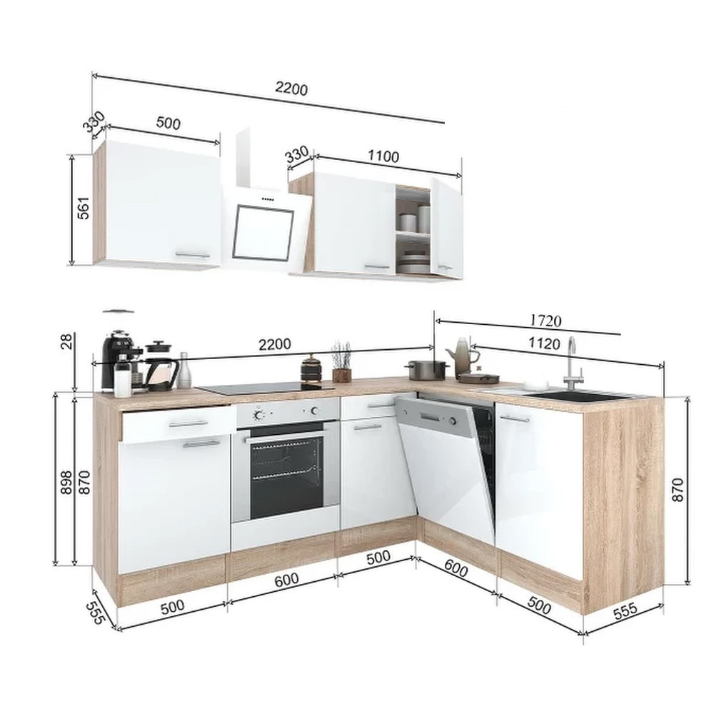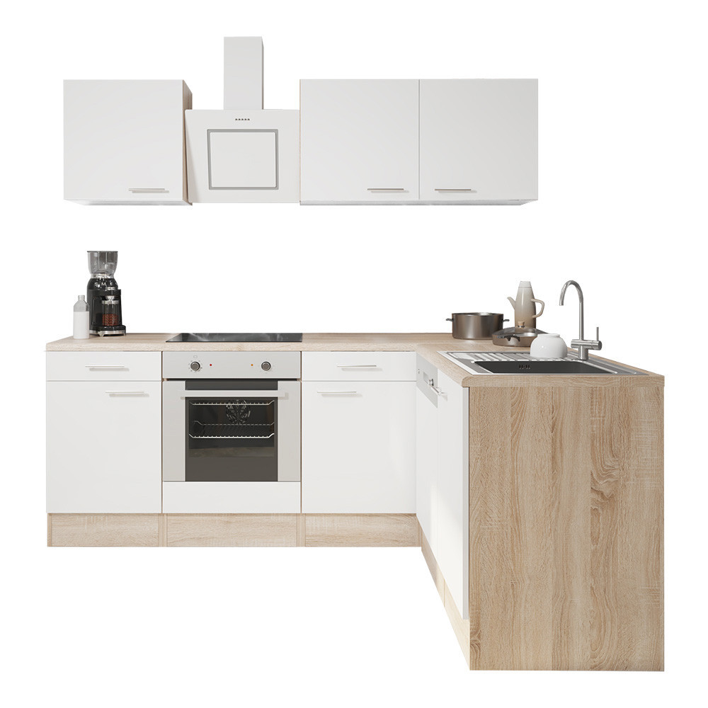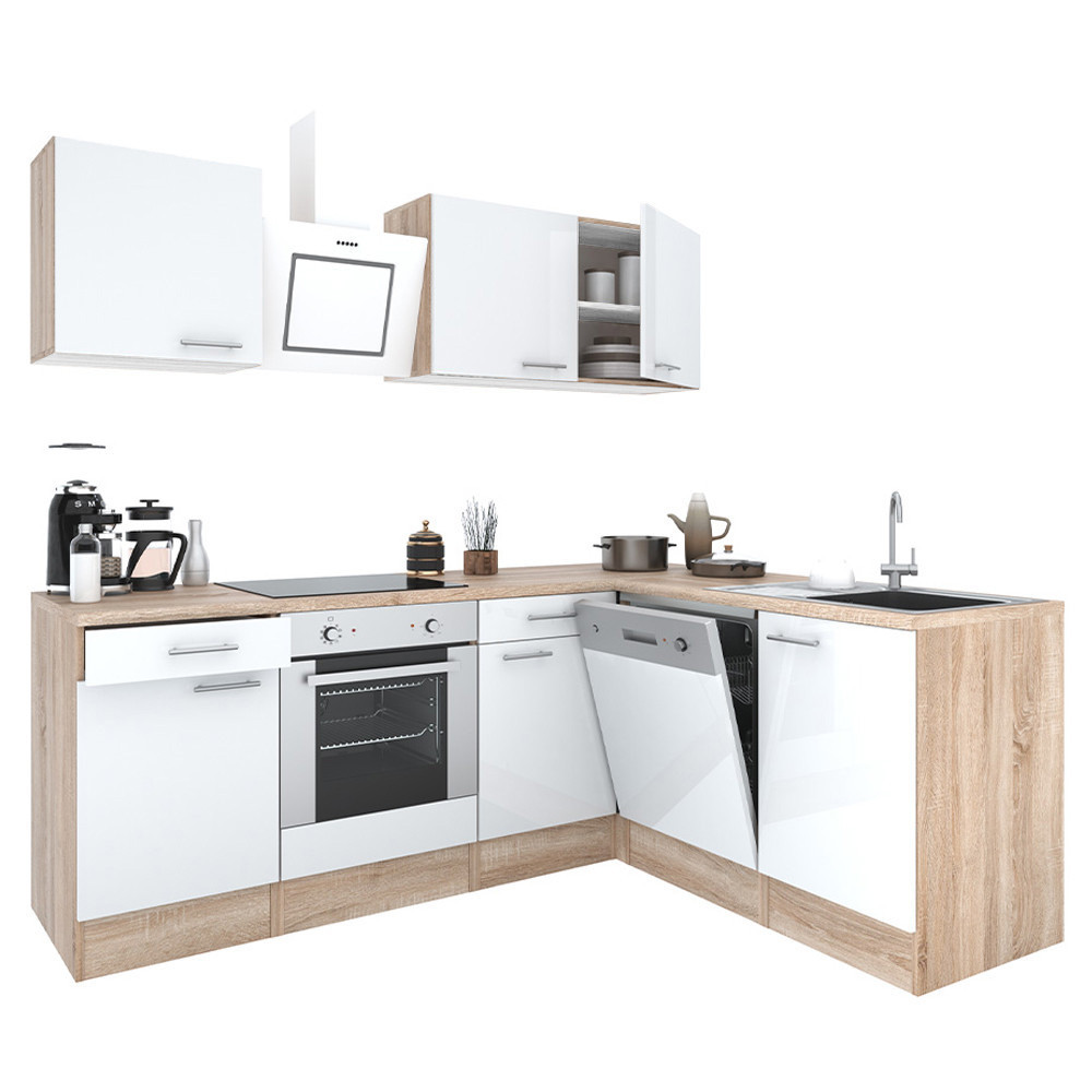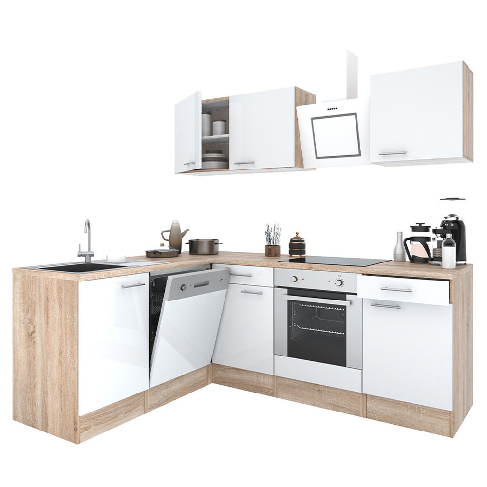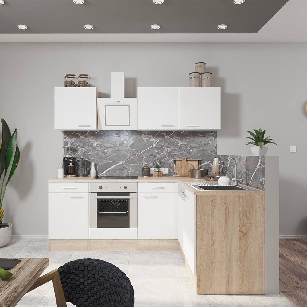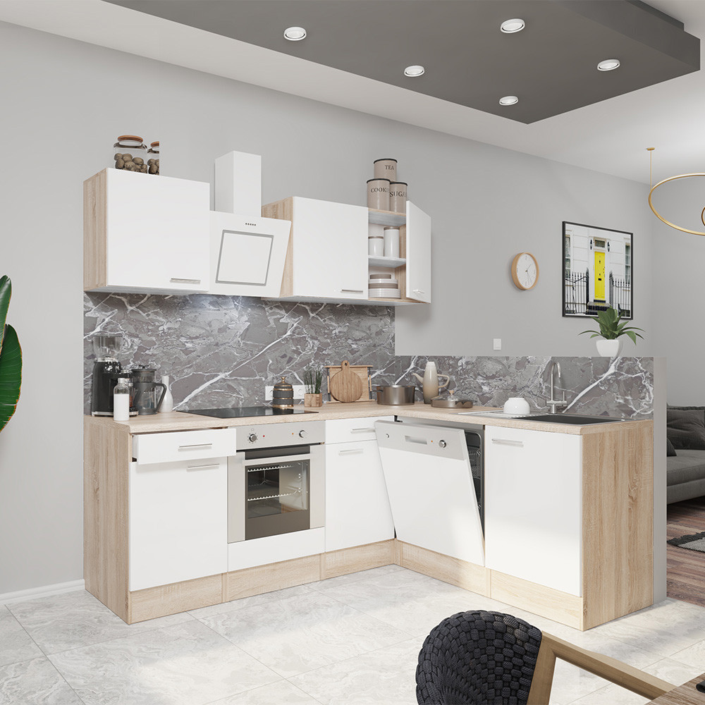 Mobilă de bucătărie de colț Yorki 220 cm – Sonoma & alb satinat, practică și modulară