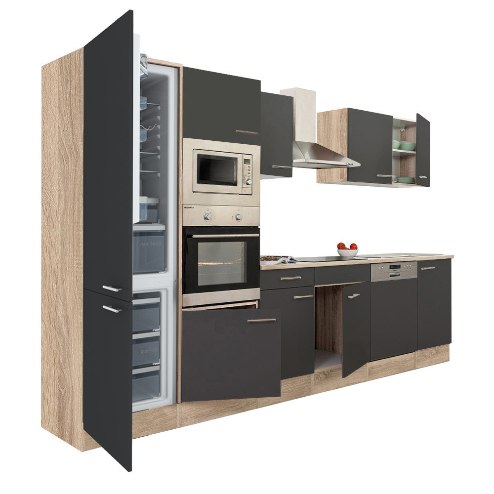 Mobilă de bucătărie Leziter Yorki 340 cm, stejar sonoma cu fronturi antracit, modulară