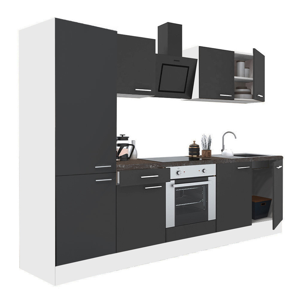 Mobilă de bucătărie modulară Leziter Yorki 270 cm – alb cu front antracit satinat