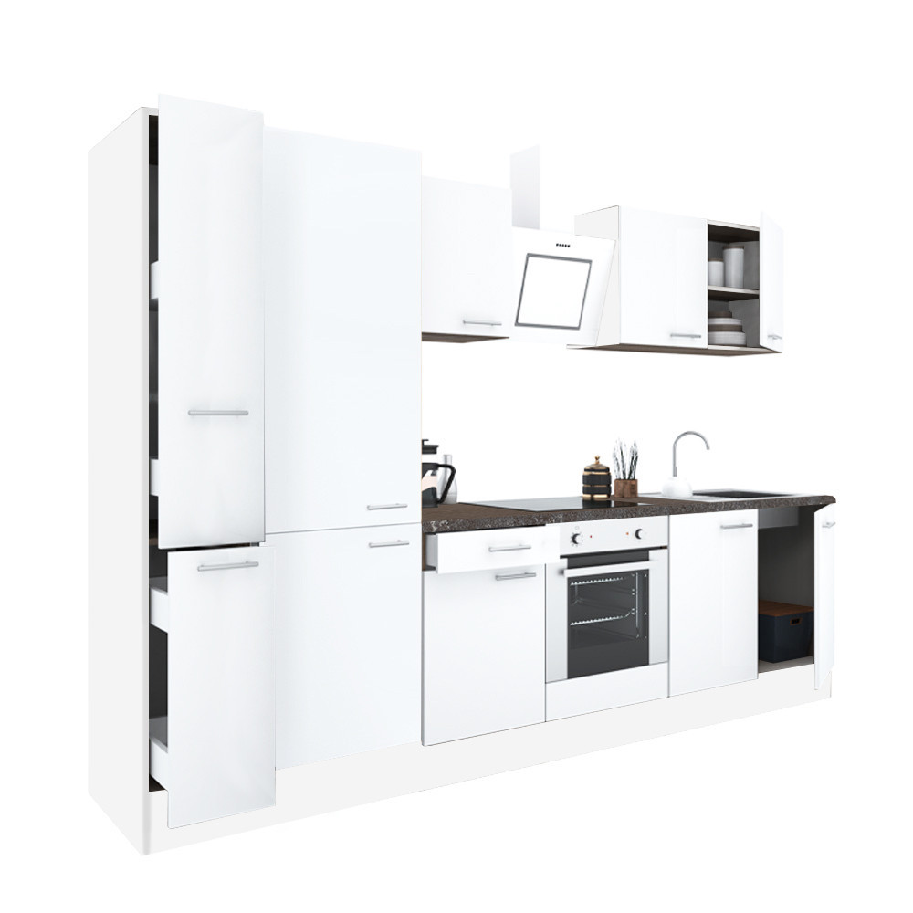 Mobilă de bucătărie modulară Leziter Yorki 300 cm, alb satinat, cu dulap cuptor