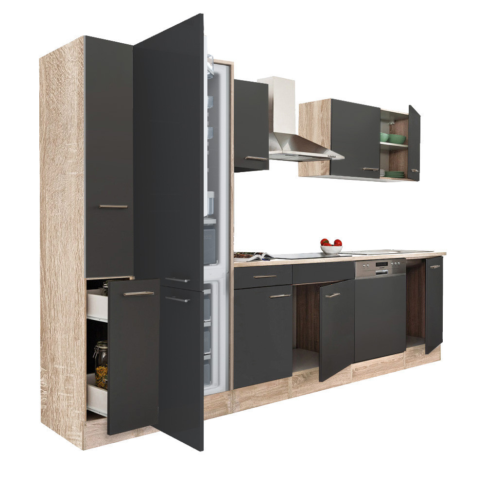 Mobilă de bucătărie modulară Yorki 310 cm – stejar Sonoma & antracit satinat
