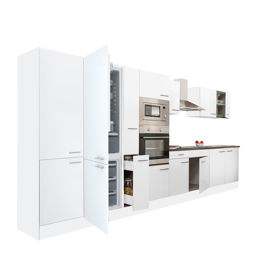 Mobilă de bucătărie modulară Leziter Yorki 420 cm, alb satinat, pentru frigider cu congelator jos