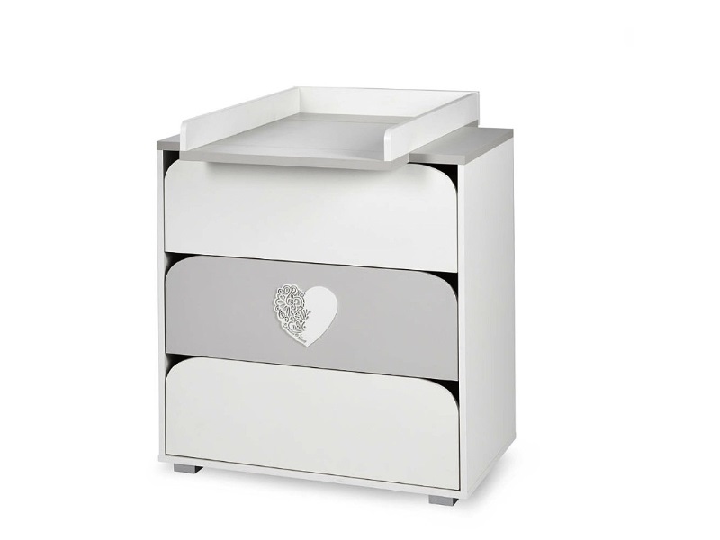 Comoda de infasat NEL HEART Alb Gri 80(L) x 45(l) x 81(h) cm este o comoda care va fi cu usurinta asortata in camera copilului Dumneavoastra. Este confectionata din materiale de calitate, este eleganta, cu linii simple, este moderna, practica si spatioasa.