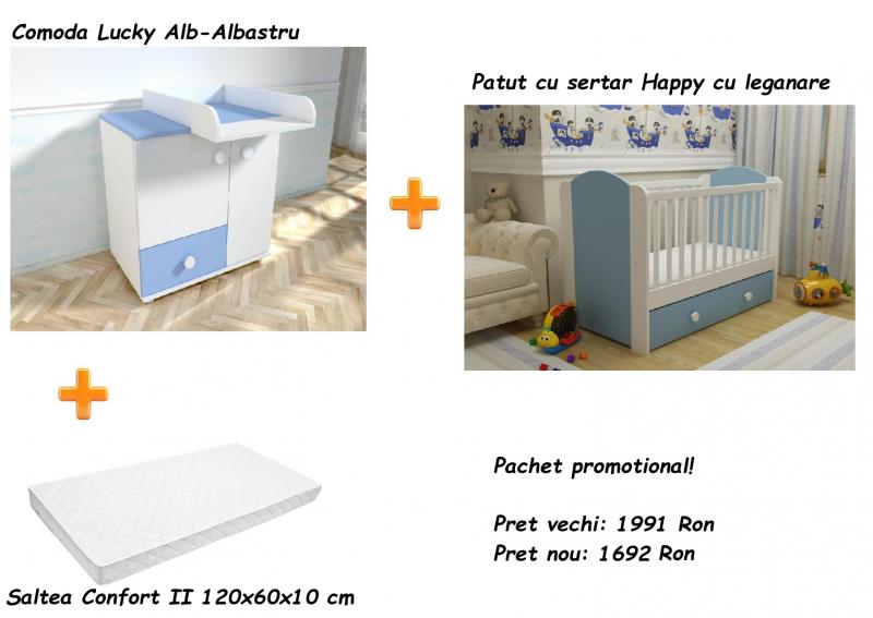 -Patut HAPPYcu sertar si laterala culisabila Alb-Aalbastru 120(L) x 60(l) cm