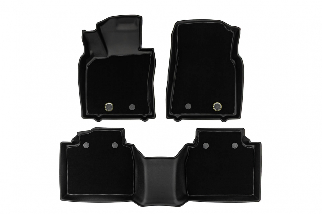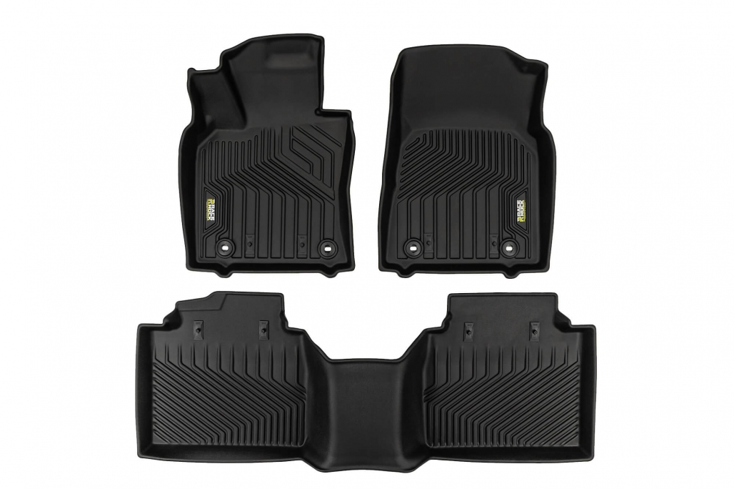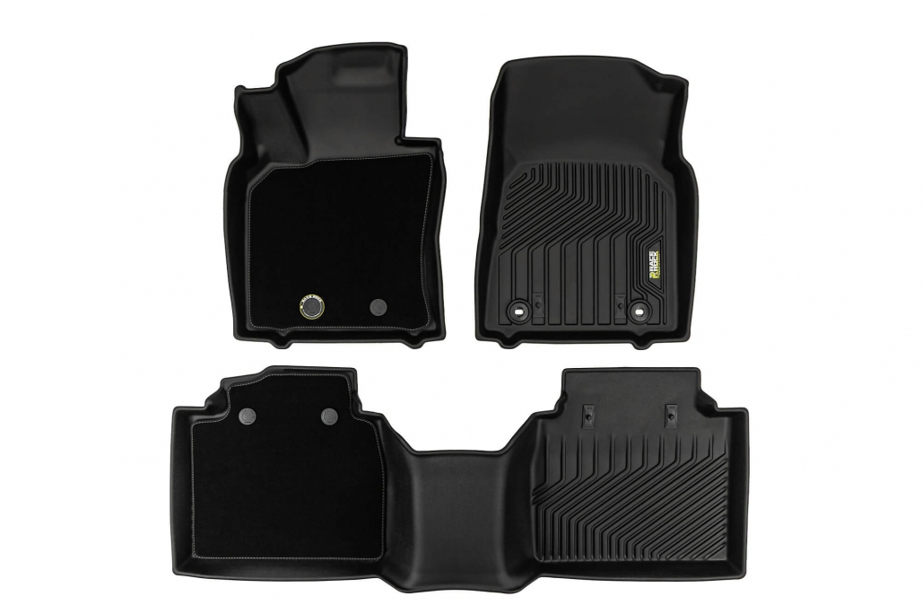 Mochete din cauciuc și covor 2 în 1 potrivite pentru Lexus ES după 2018, set de 3 piese, culoare neagră din seria Frogum 5D Race Rock Performance AutoTuning