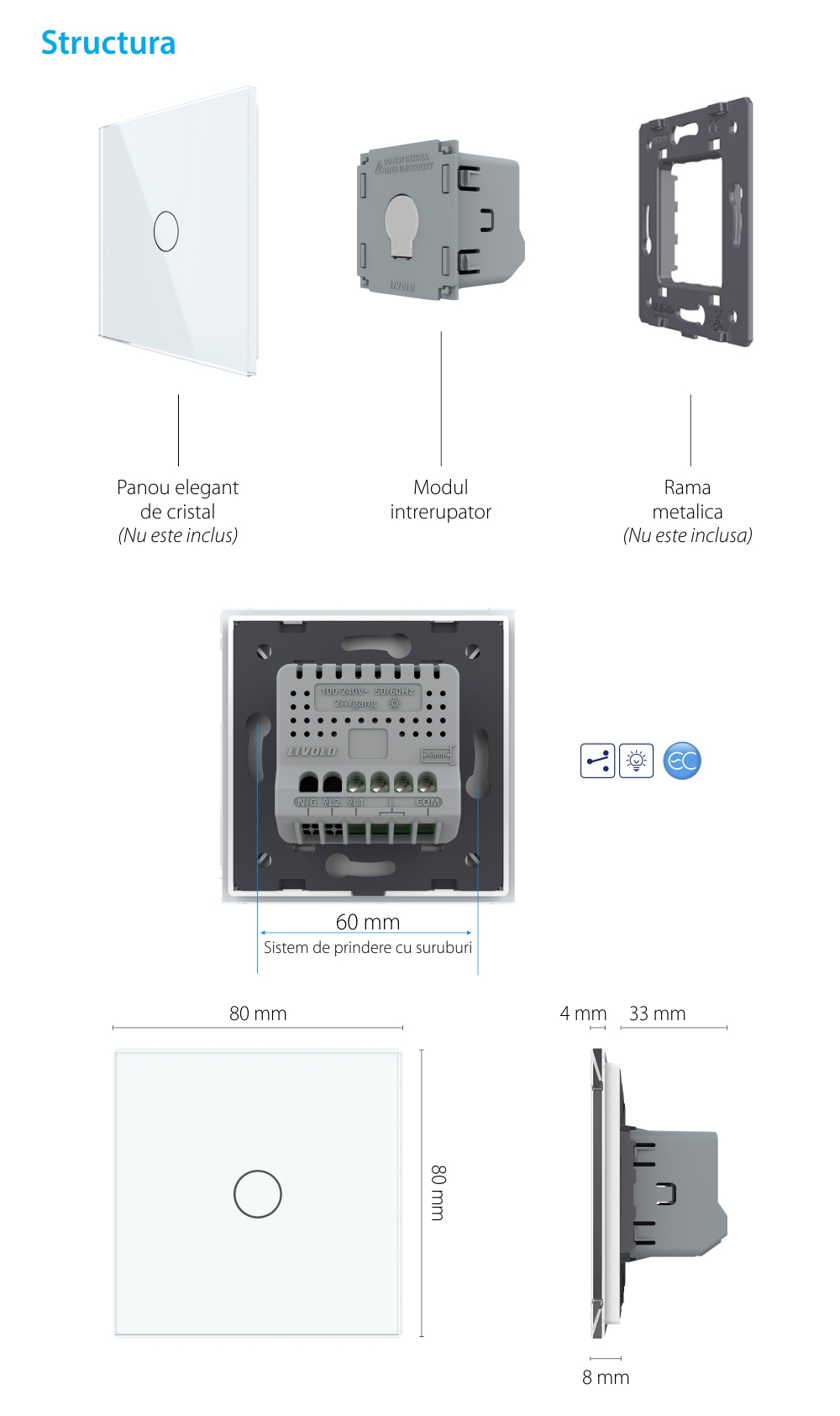 Modul Intrerupator Cap Scara / Cruce cu Dimmer cu Touch LIVOLO - Protocol Zigbee EC SmartElectro IntelligentHouse