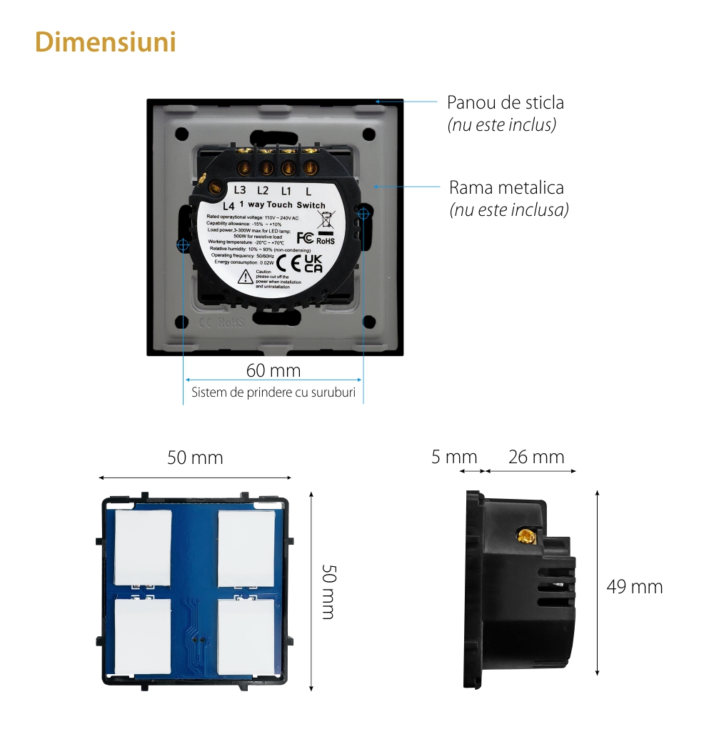 Specificatii Modul Intrerupator Cvadruplu Silicon Touch LUXION