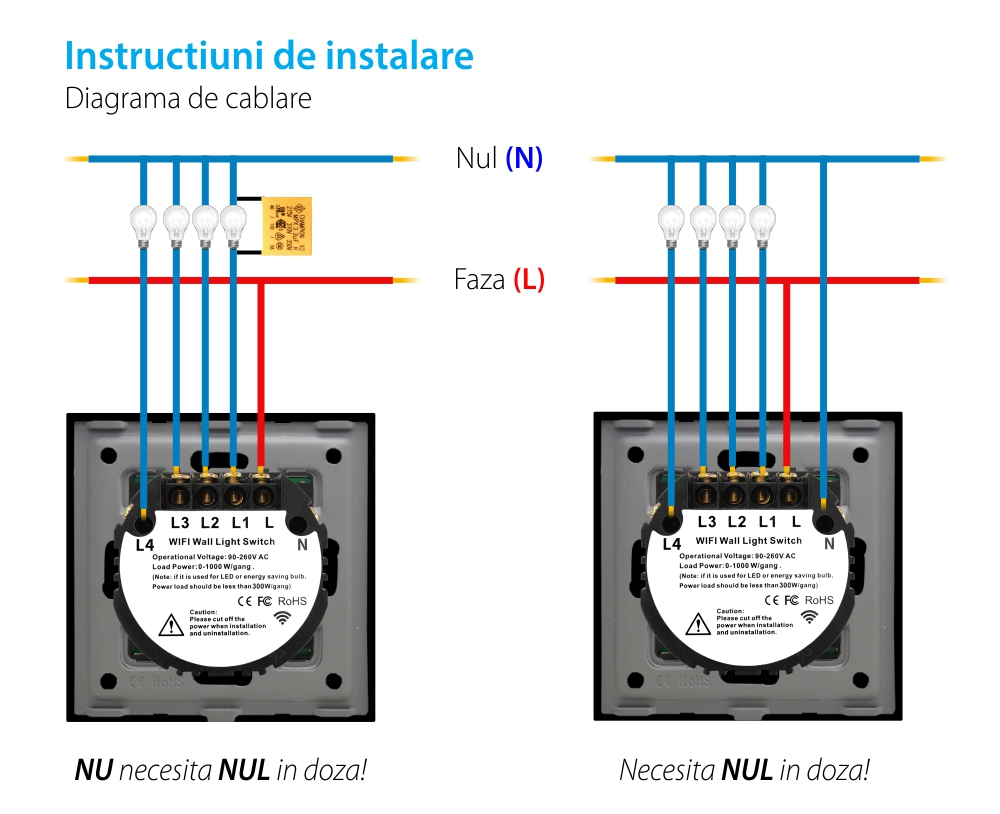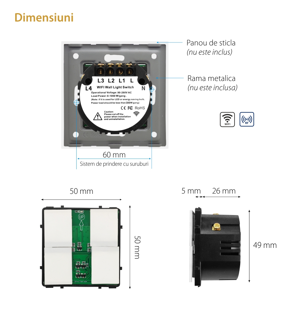Specificatii Modul Intrerupator Cvadruplu Wi-Fi + RF433