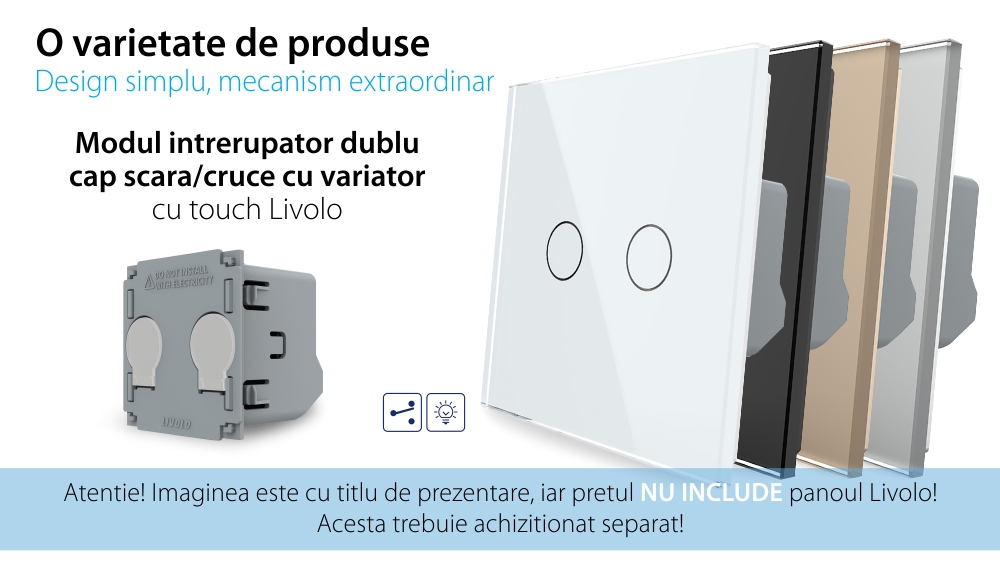 Modul Intrerupator Dublu Cap Scara / Cruce cu Variator si Touch LIVOLO - Serie Noua SmartElectro IntelligentHouse