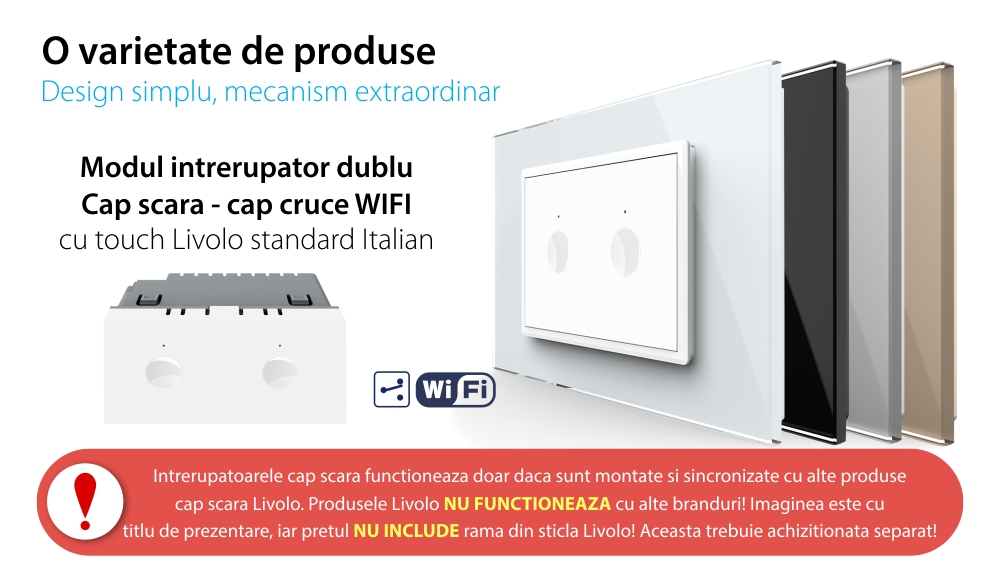 Modul Intrerupator Dublu Cap Scara / Cruce Wi-Fi cu Touch LIVOLO, standard italian – Serie Noua, Alb SmartElectro IntelligentHouse