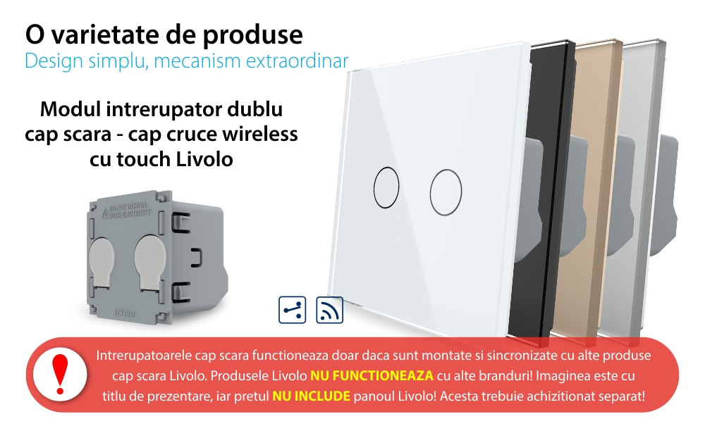 Modul Intrerupator Dublu Cap Scara / Cruce Wireless cu Touch LIVOLO - Serie Noua SmartElectro IntelligentHouse