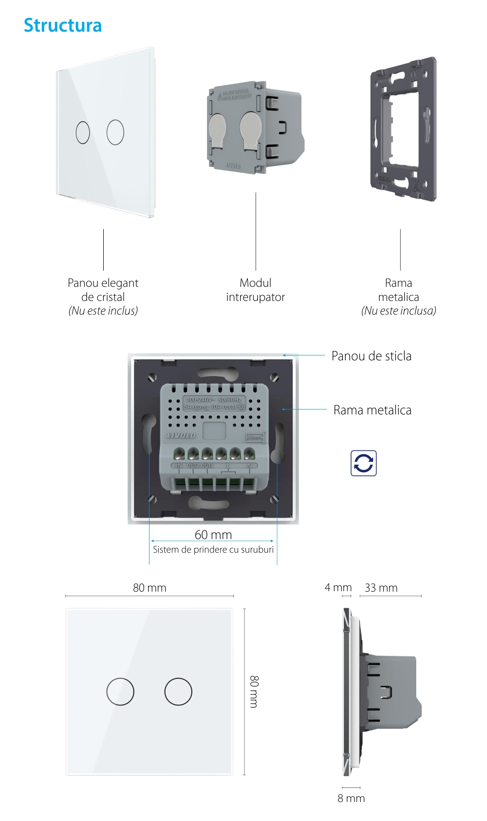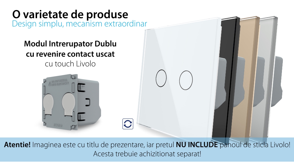 Modul Intrerupator Dublu cu Revenire, Contact Uscat cu Touch LIVOLO - Serie Noua SmartElectro IntelligentHouse