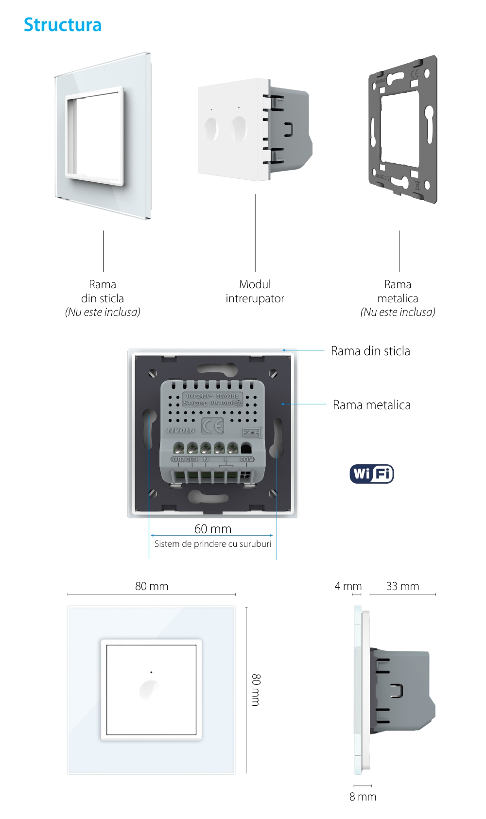 Specificatii Modul Intrerupator Dublu Wi-Fi Touch LIVOLO