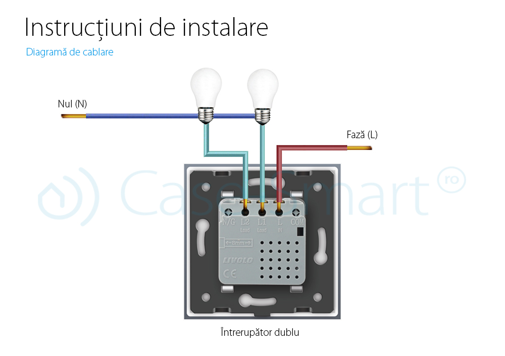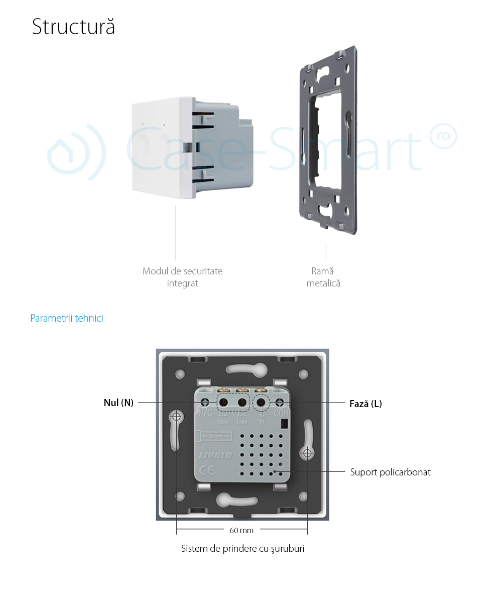 Specificatii Modul intrerupator dublu wireless touch LIVOLO,
