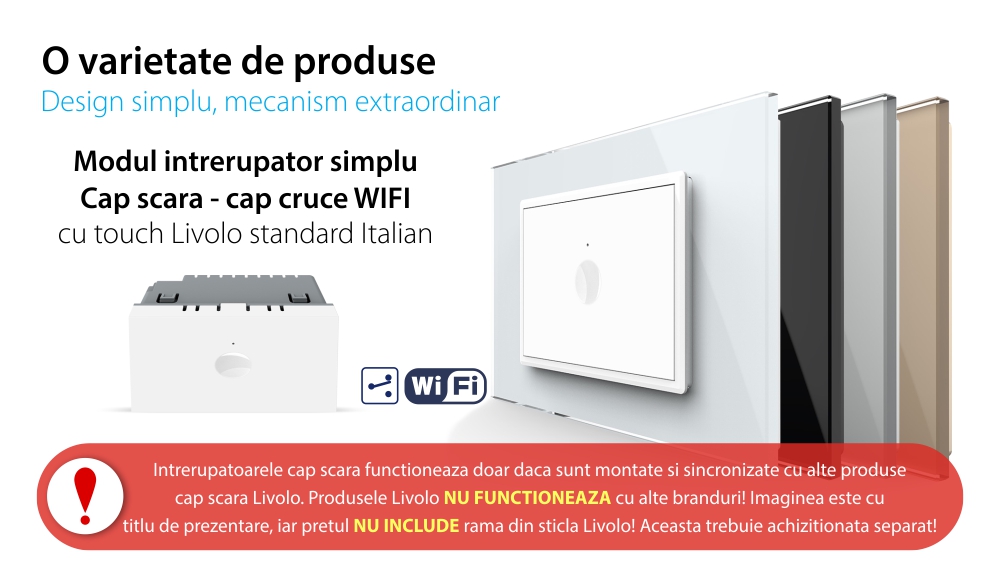 Modul Intrerupator Simplu Cap Scara / Cruce Wi-Fi cu Touch LIVOLO, standard italian – Serie Noua, Alb SmartElectro IntelligentHouse