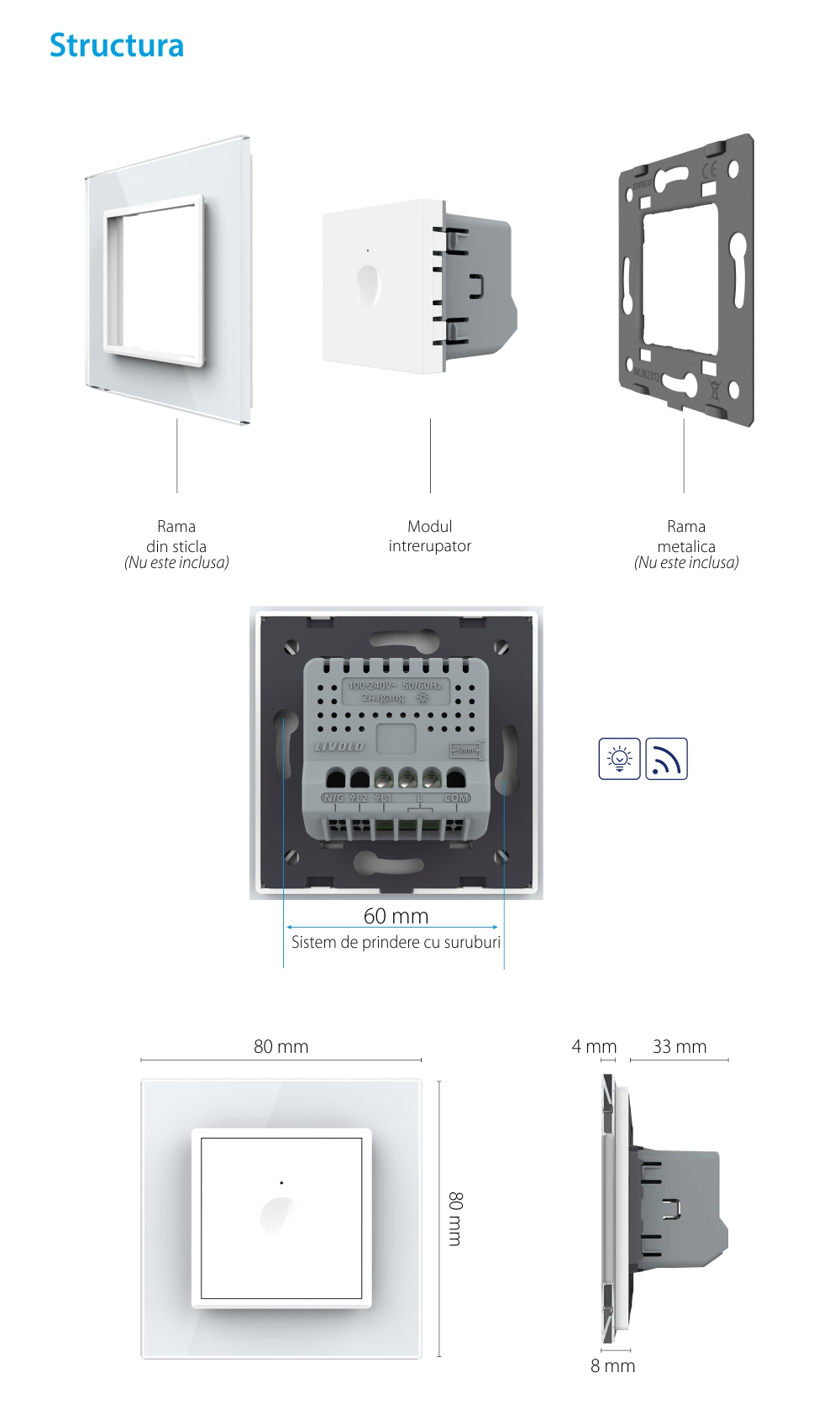 Specificatii Modul Intrerupator Simplu Dimmer, Wireless Touch