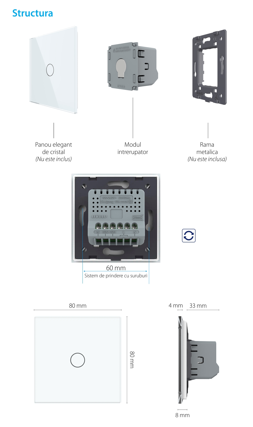 Modul Intrerupator Simplu cu Revenire, Contact Uscat cu Touch LIVOLO - Serie Noua SmartElectro IntelligentHouse