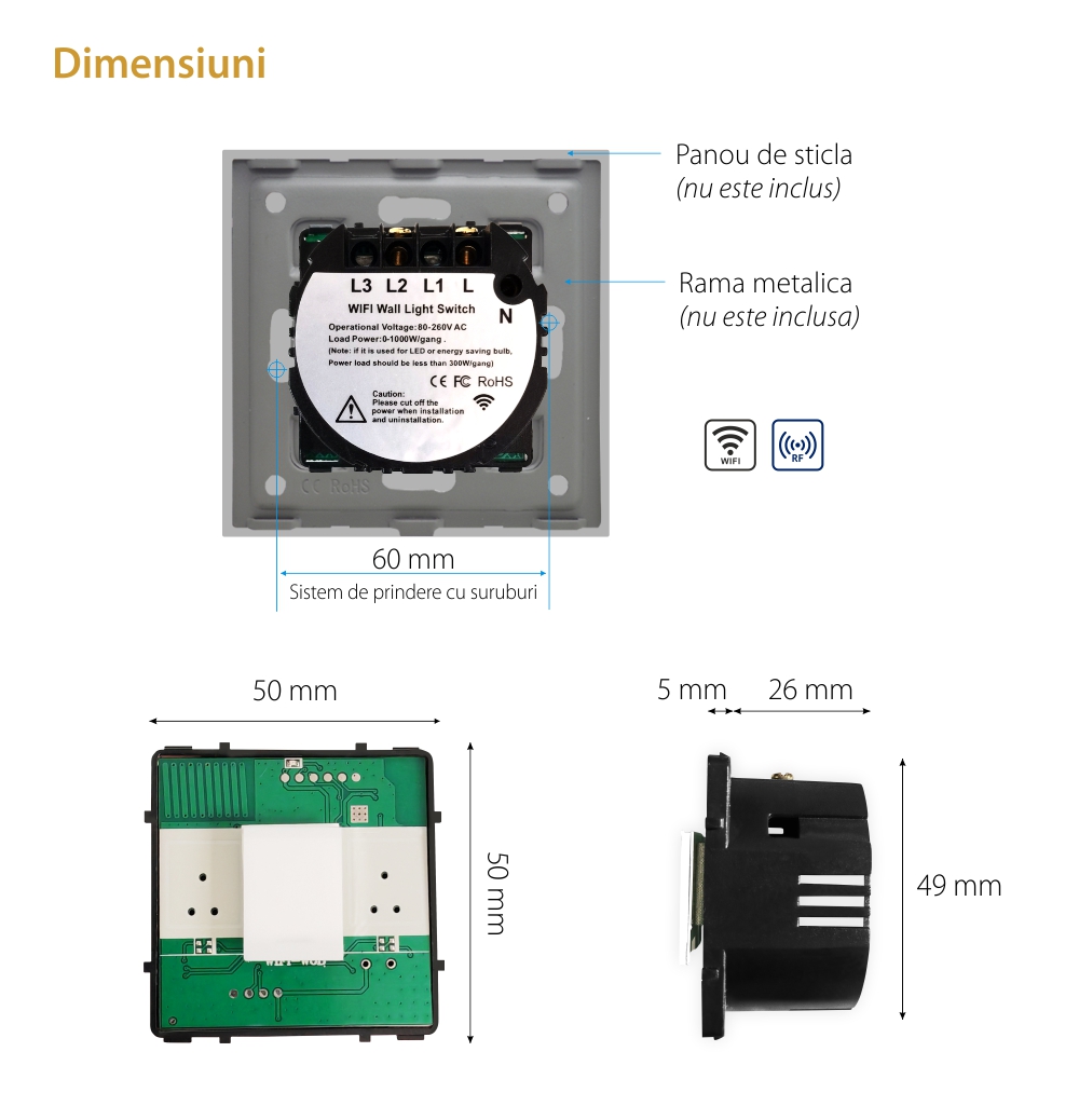Specificatii Modul Intrerupator Simplu Wi-Fi + RF433