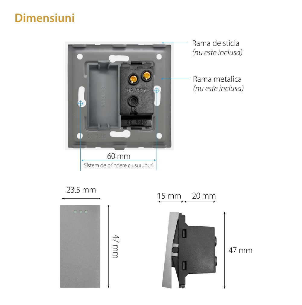 Specificatii Modul Intrerupator Simplu Mecanic 1M LUXION