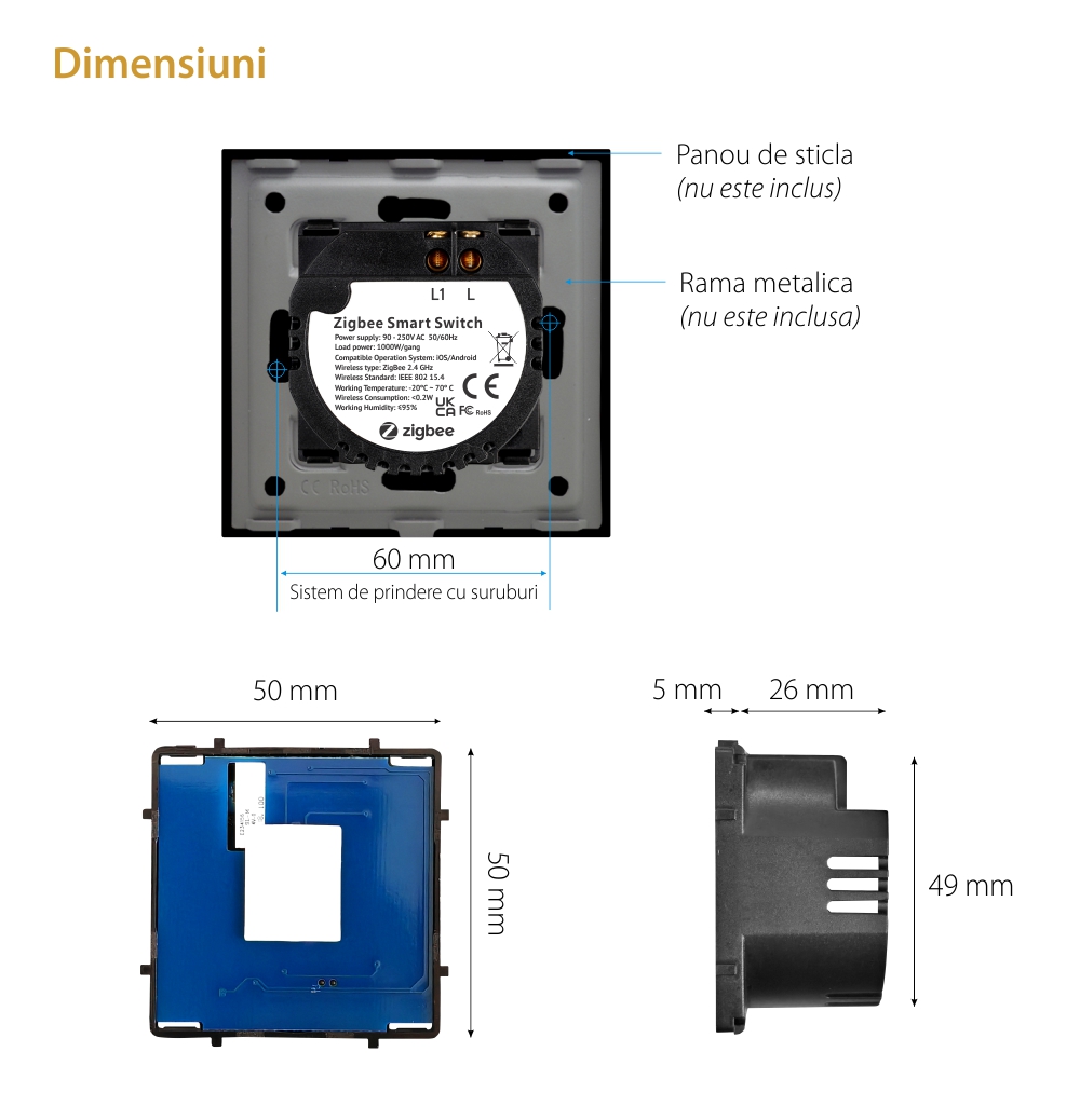 Modul Intrerupator Simplu, Protocol ZigBee cu Touch LUXION SmartElectro IntelligentHouse