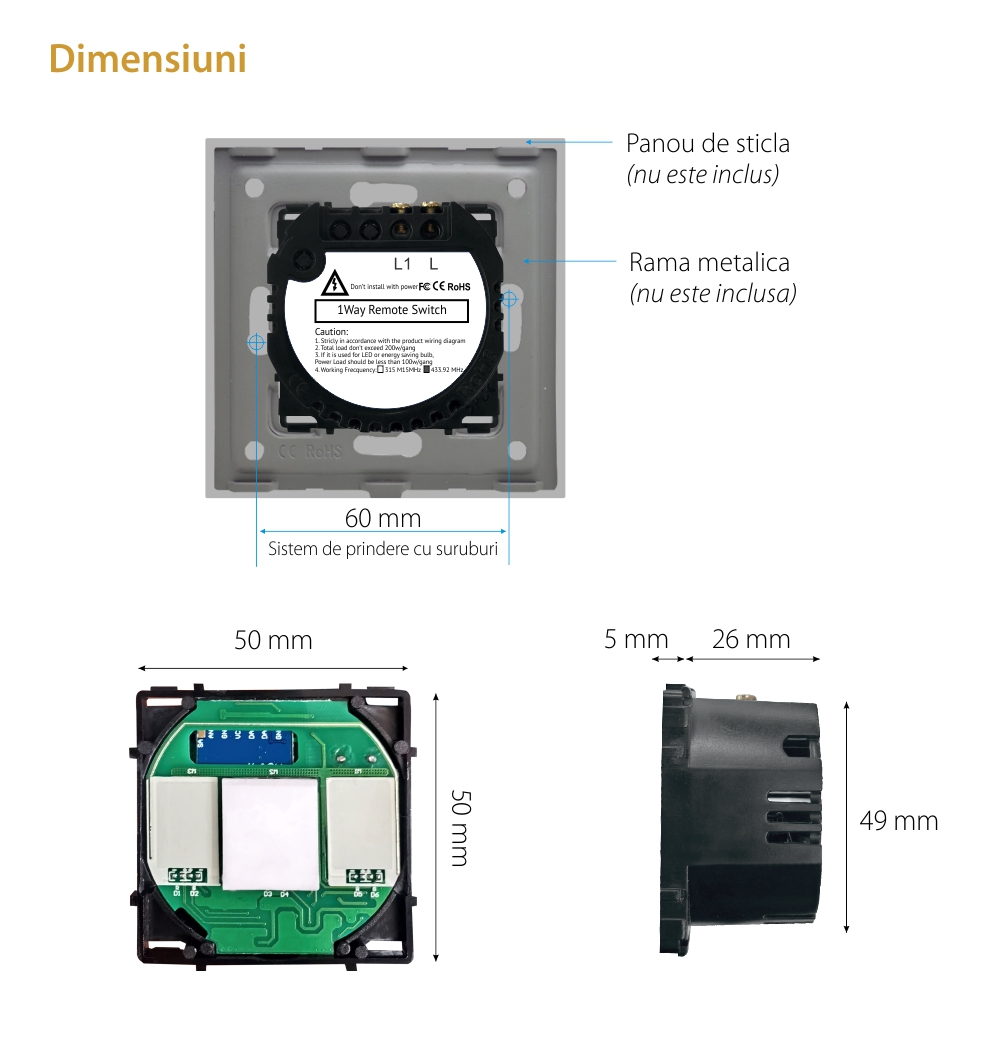 Specificatii Modul Intrerupator Simplu, RF433 Touch LUXION