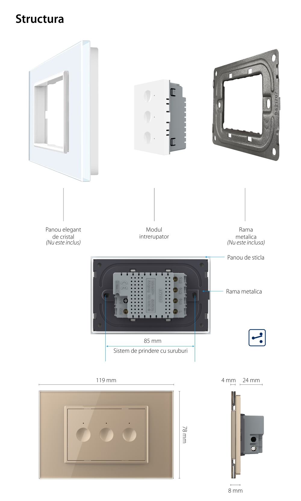 Specificatii Modul intrerupator triplu cap scara /