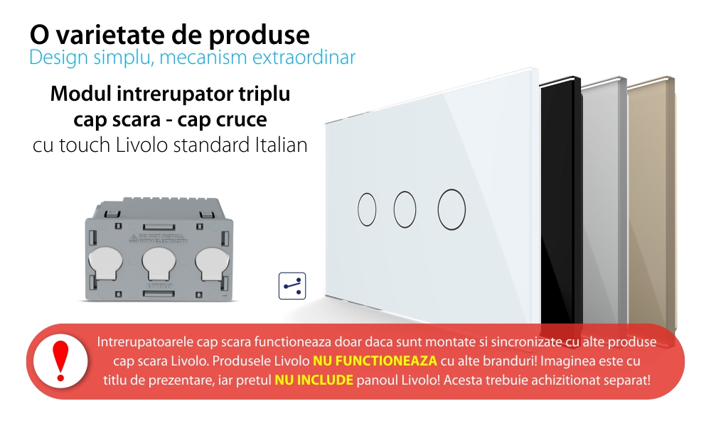 Modul intrerupator triplu cap scara / cruce cu touch Livolo standard Italian SmartElectro IntelligentHouse