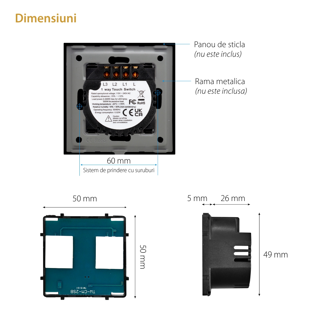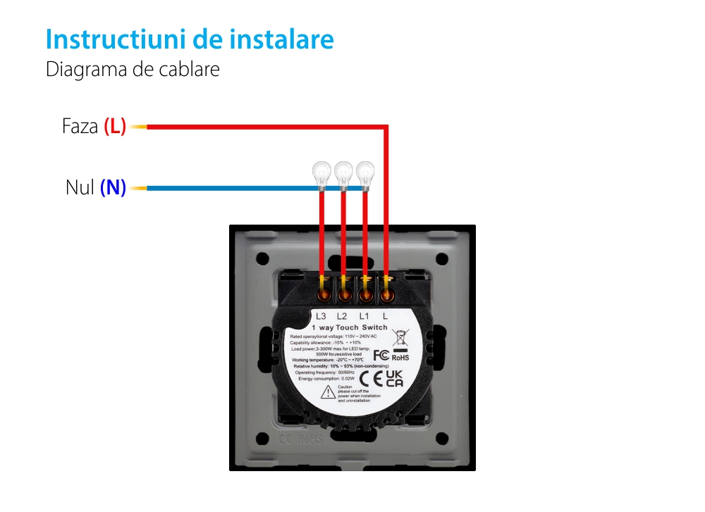 Specificatii Modul Intrerupator Triplu Silicon Touch LUXION