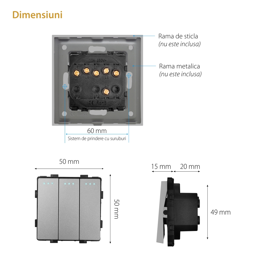 Specificatii Modul Intrerupator Triplu Mecanic LUXION SmartElectro