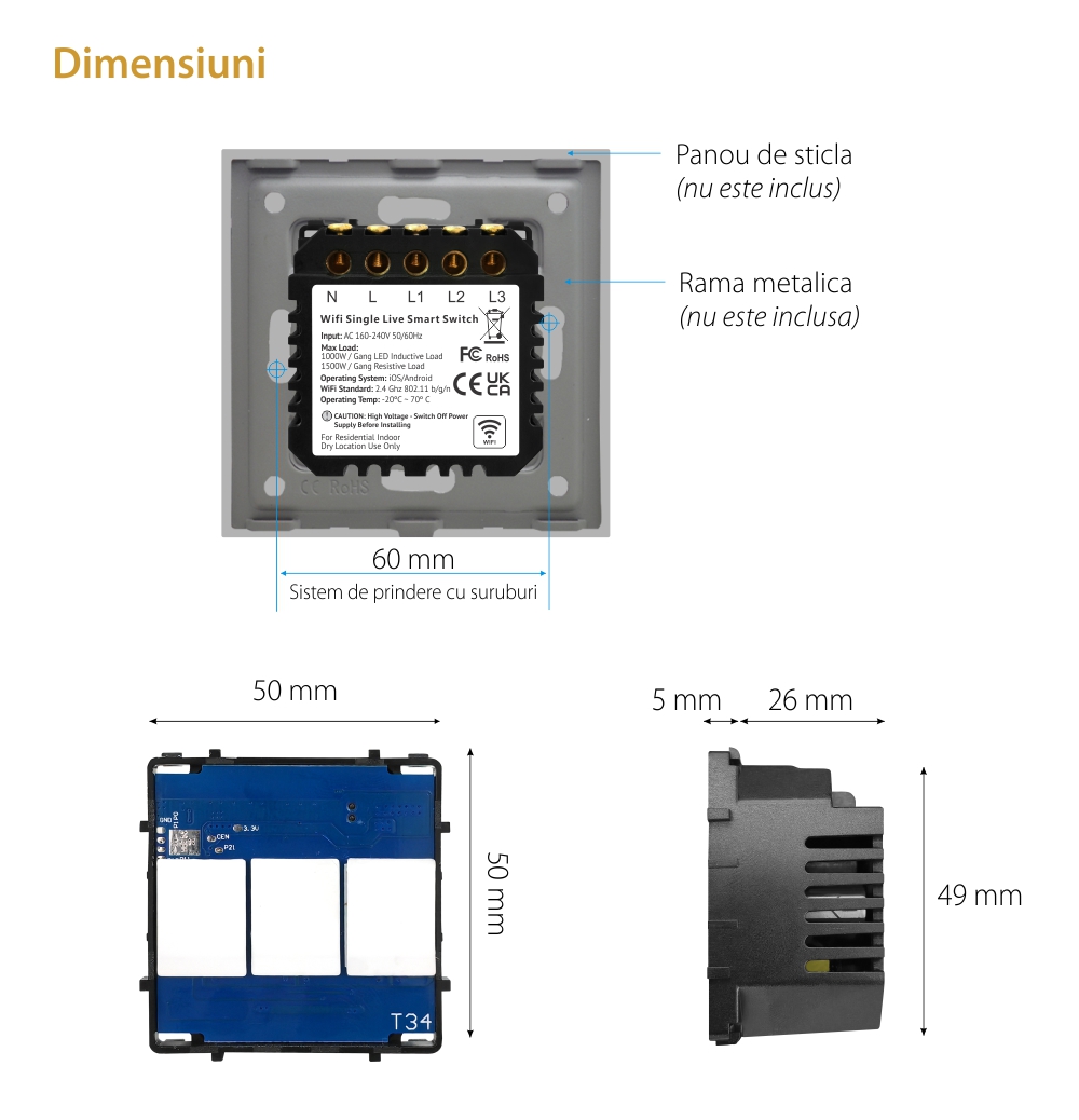 Specificatii Modul Intrerupator Triplu Wi-Fi Touch LUXION