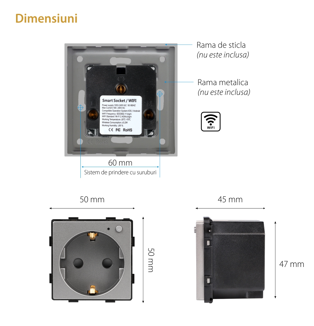 Specificatii Modul Priza Inteligenta Wi-Fi Monitorizare Consum,
