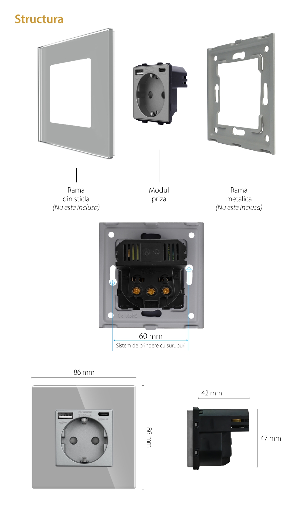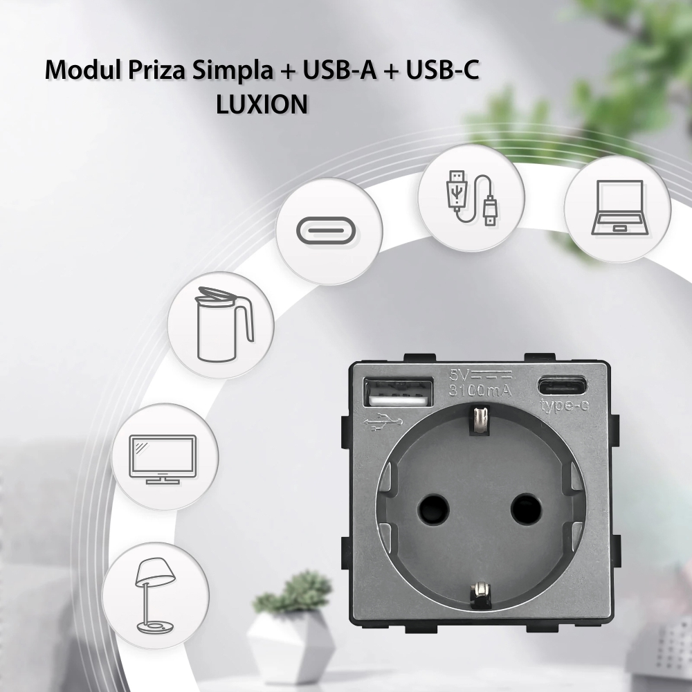 Modul Priza Simpla + USB-A + USB-C LUXION SmartElectro IntelligentHouse