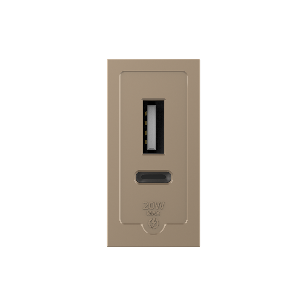 Modul priza USB-A + USB-C cu doua porturi de incarcare cu o putere totala de 20W. Accepta protocoale PD, QC, FCP, AFC, APPLE 5V/2.4A, BC1.2 DCP etc. In timp ce dispozitivele sunt conectate, priza va determina automat cea mai buna metoda de incarcare.