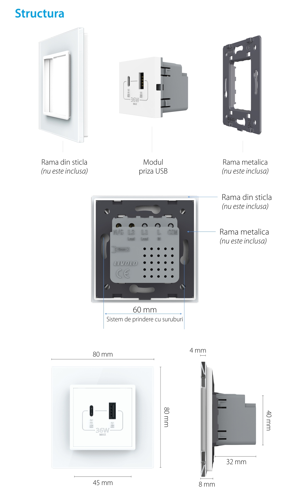 Specificatii Modul Priza USB-A + USB-C LIVOLO