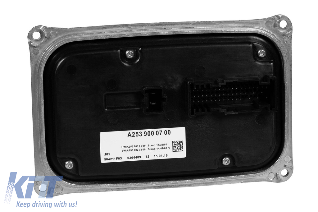 Acest modul LED este un înlocuitor pentru modulul de faruri LED din fabrică. Modulul este responsabil pentru luminile de zi LED, funcția de iluminare adaptivă, iar în funcție de nivelul de echipare, modulul poate fi responsabil și pentru alte funcții. Este destinat pentru montaj pe partea stângă (partea șoferului). Când acest modul are o problemă, următoarele erori vor fi afișate: Acest modul este destinat farurilor LED echipate cu ILS (Sistem de Iluminare Inteligent)! Modulul este potrivit pentru următoarele vehicule: Numărul original de la Mercedes-Benz: Informații tehnice: • Greutate: 1.00 • Producător: MERCEDES-BENZ • EAN: 1000005632 • Garanție: 3 luni • Tip balast: Fabricat • Tensiune: 12V