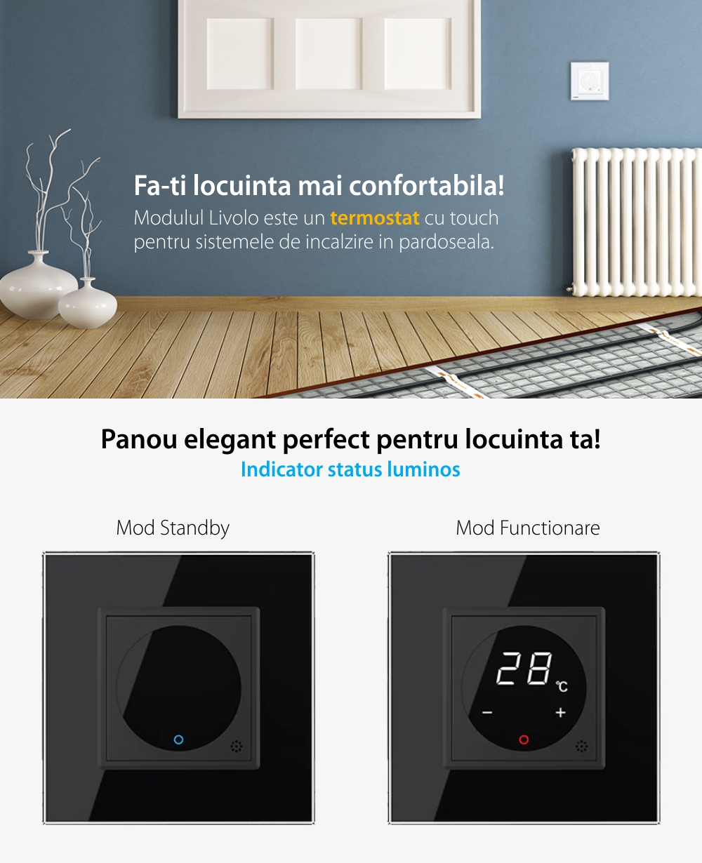 Descriere Modul termostat Livolo sisteme incalzire electrice