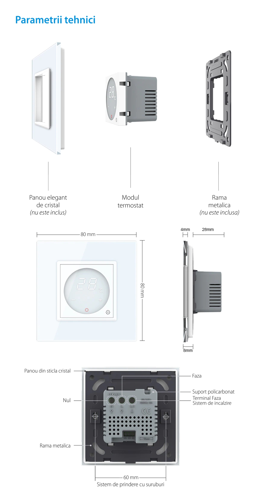 Specificatii Modul termostat Livolo sisteme incalzire electrice