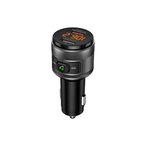- transmite wireless, prin Bluetooth, muzica si apelurile de pe telefonul mobil la sistemul stereo FM al masinii;
