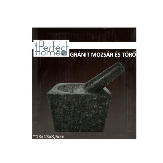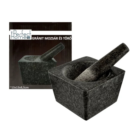 Mojar pătrat din granit natural cu pistil, 13×13×8,5 cm – Perfect Home