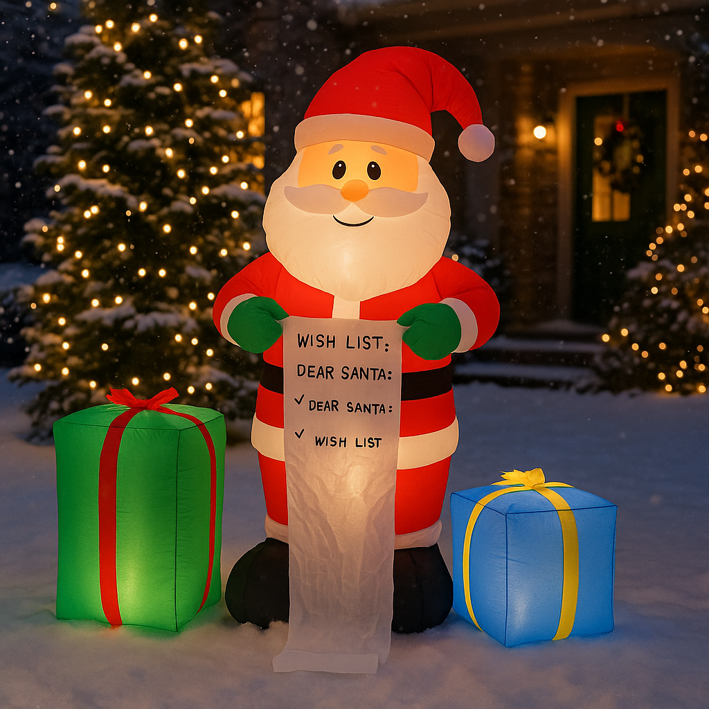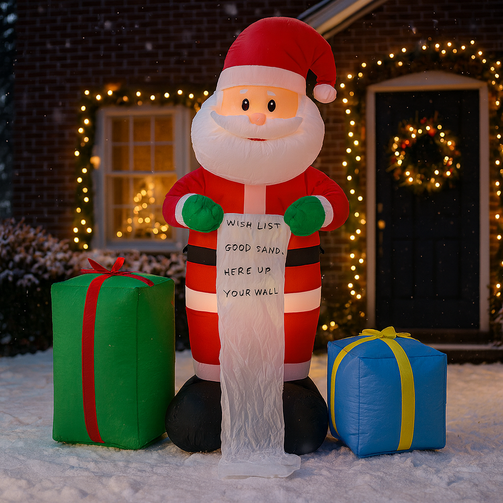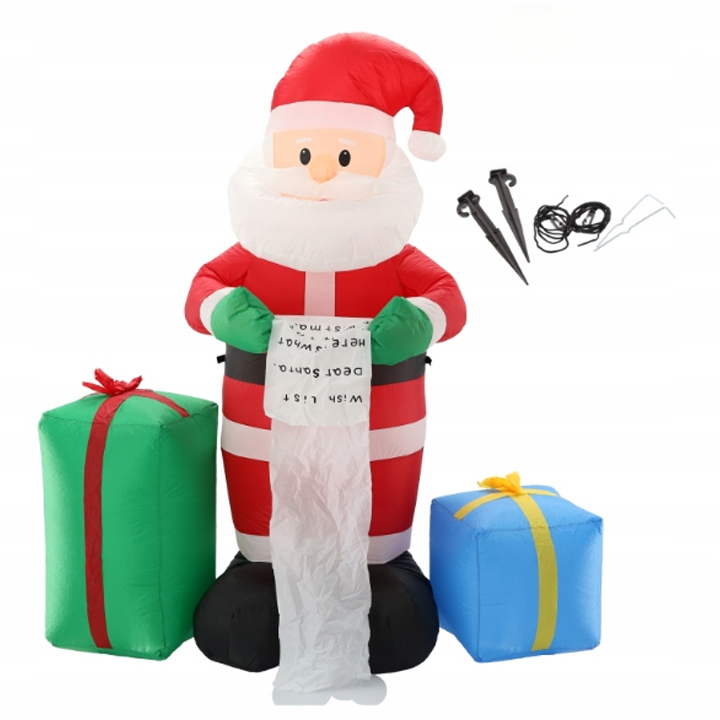 Mos Craciun gonflabil de exterior, iluminare LED, cu cadouri si lista, compresor integrat, 180x80x60 cm, rosu Household NewTrend