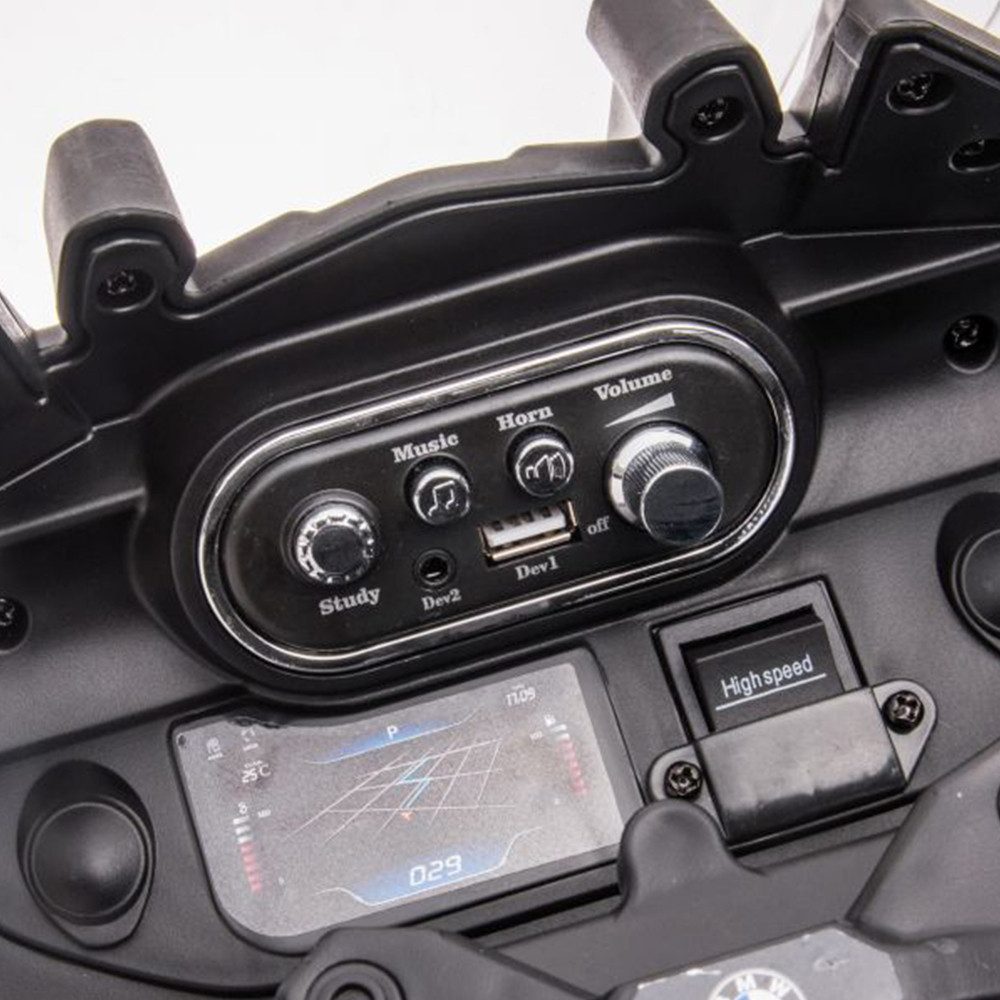 În plus, are funcții multimedia care fac experiența și mai plăcută: USB, MP3, claxon și volum reglabil. Luminile frontale tip LED completează atmosfera de „patrulare”, perfectă pentru plimbări prin curte, alee sau parc (sub supravegherea unui adult).