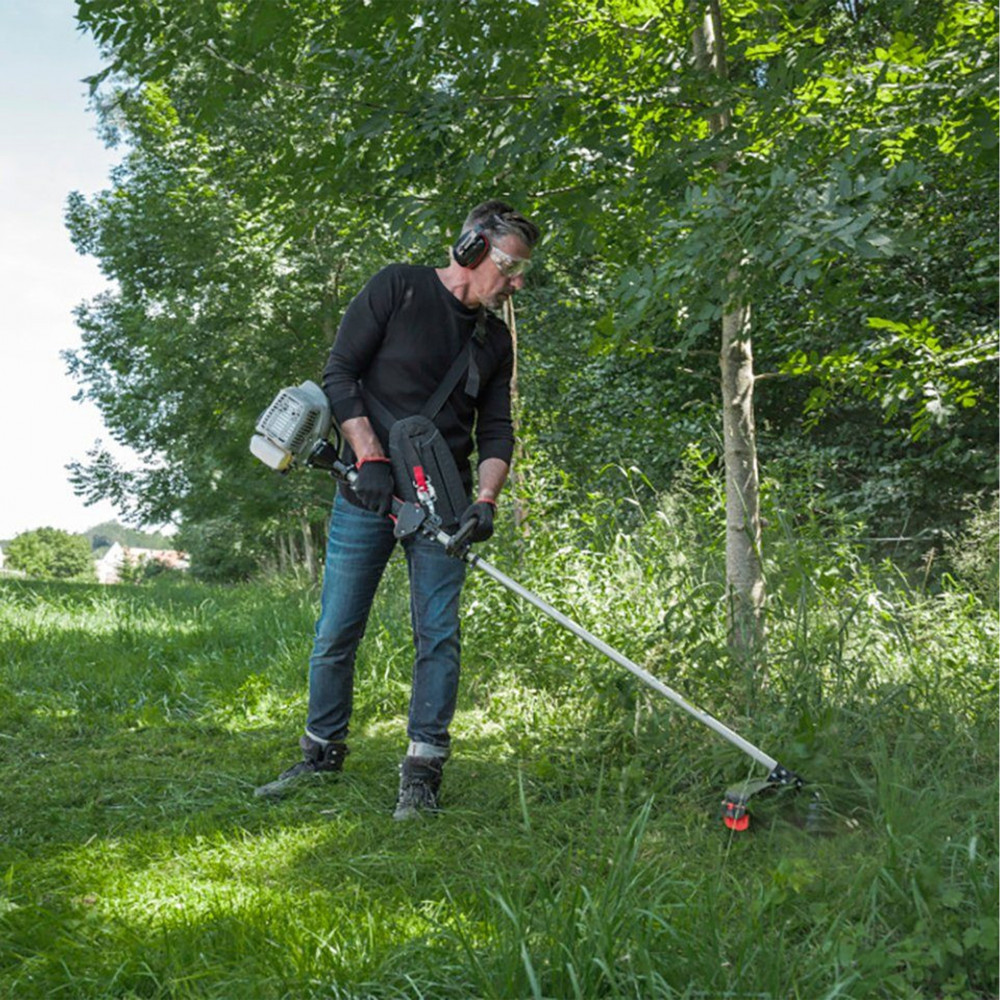 Cu o lățime de tăiere generoasă de 41 cm, această motocoasă pe benzină este ideală pentru utilizatorii care caută putere, mobilitate și libertate de mișcare fără cabluri. Ghidonul ergonomic reglabil și cureaua de susținere contribuie la o utilizare mai comodă, reducând oboseala în timpul lucrului.
