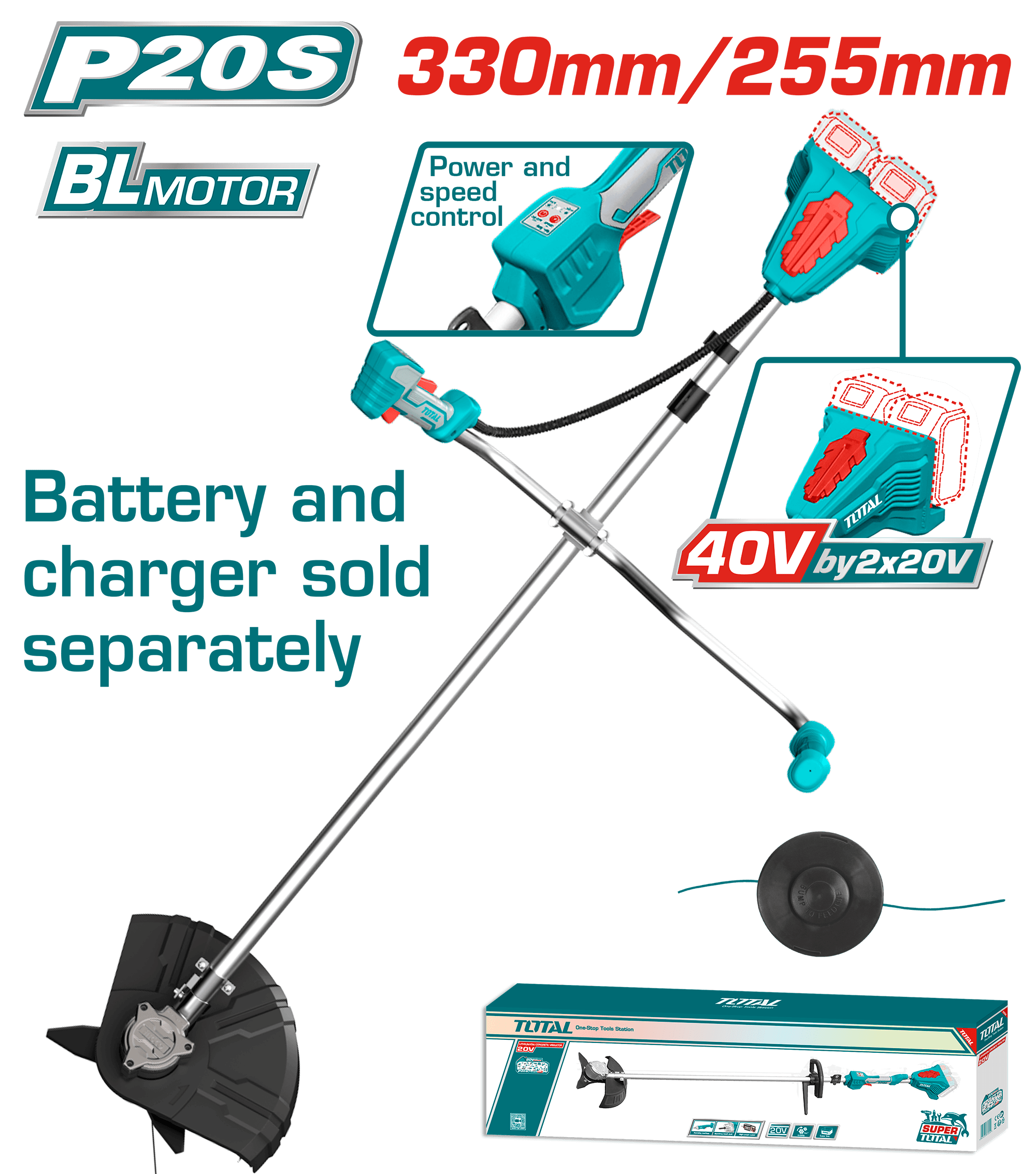 Motocoasă și trimmer TOTAL 40V Li-Ion, brushless, 2 în 1, fără acumulator