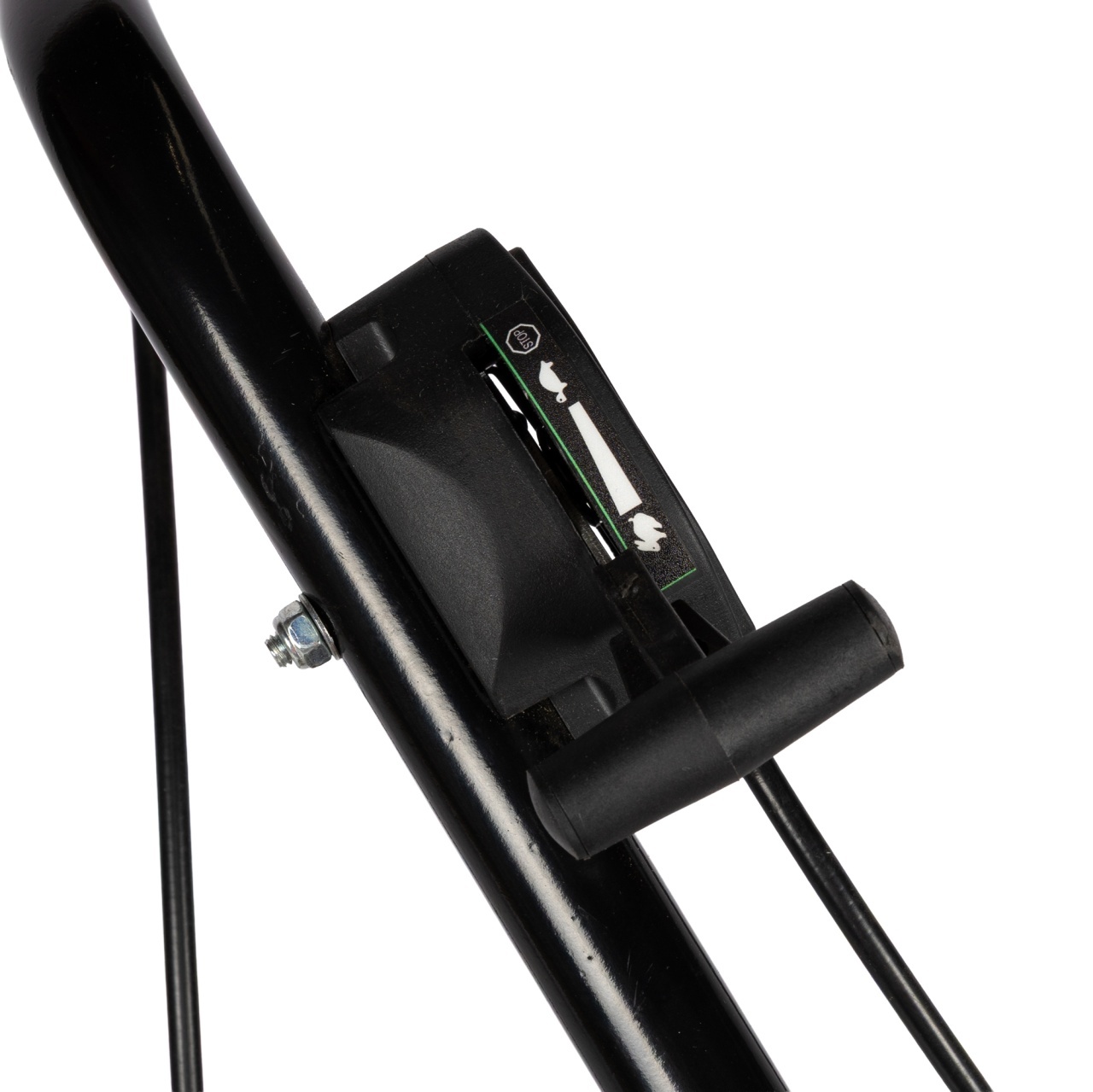 - Pornește motorul și adaptează ritmul de lucru în funcție de densitatea ierbii
