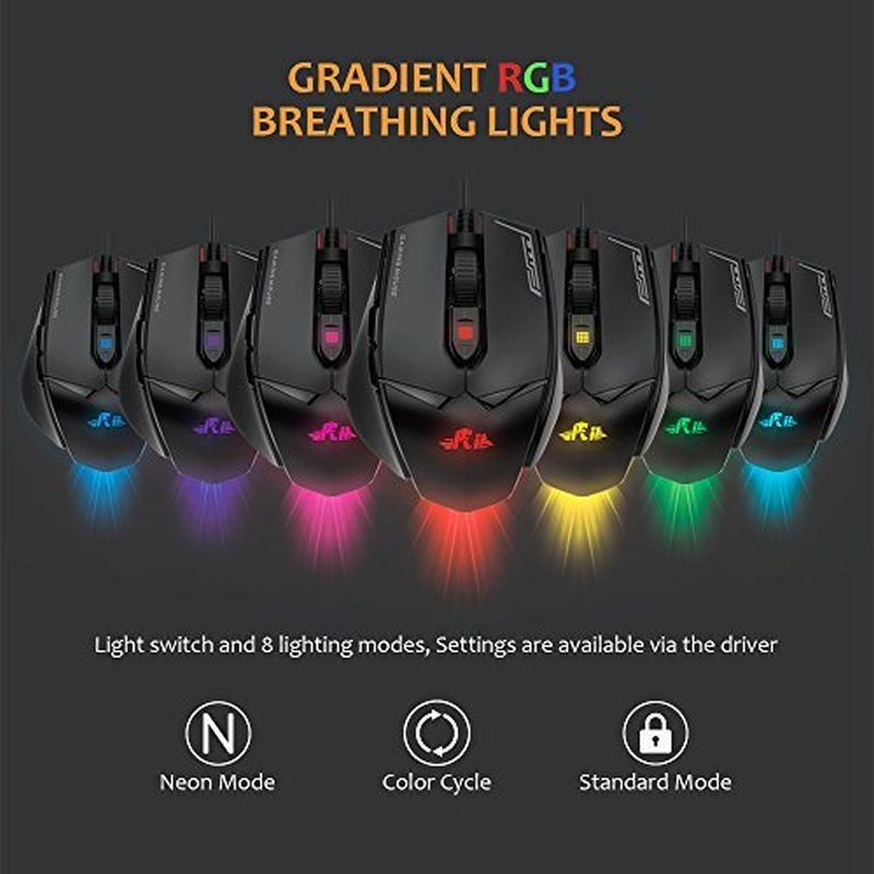 Cauti un mouse gaming rapid si precis pentru competitii sau sesiuni lungi? Modelul Rii cu 12000 DPI si senzor PMW3360 iti ofera control excelent, iar iluminarea RGB completeaza perfect setup-ul tau.